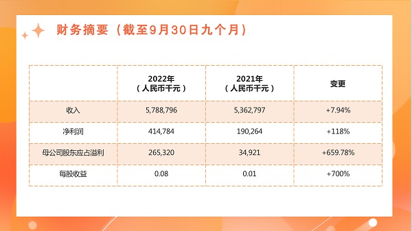 2022年10月20日,招金礦業股份有限公司公布截至2022年9月30日止三季度業績。前三季度,在黃金價格走低、內外部環境嚴峻復雜等多種不利因素考驗下,全公司上下錨定主業,交出了一份“大攻堅”的成績單。前三季度公司共完成礦產金產量42.14萬盎司(約13.11噸),同比大增64%;實現凈利約人民幣4.15億元,同比增長約118%;歸母凈利潤約人民幣2.65億元,實現近7倍增長;每股收益約人民幣0.08元,比去年同期增長了700%。