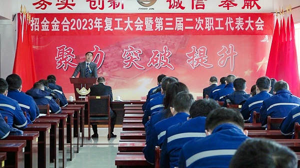 1月28日上午,招金金合召開了復(fù)工大會(huì),總經(jīng)理溫永杰從安全環(huán)保、生產(chǎn)經(jīng)營、攻堅(jiān)突破等方面總結(jié)回顧了公司取得的一系列成績(jī),同時(shí)在部署2023年工作中提出:全體干部員工要堅(jiān)決落實(shí)開工第一件事就是“講安全、抓安全”的要求,并將其作為復(fù)工復(fù)產(chǎn)的先決條件,嚴(yán)格履行各級(jí)安全主體職責(zé),為公司2023年生產(chǎn)經(jīng)營再攀高峰,起好步,開好局。