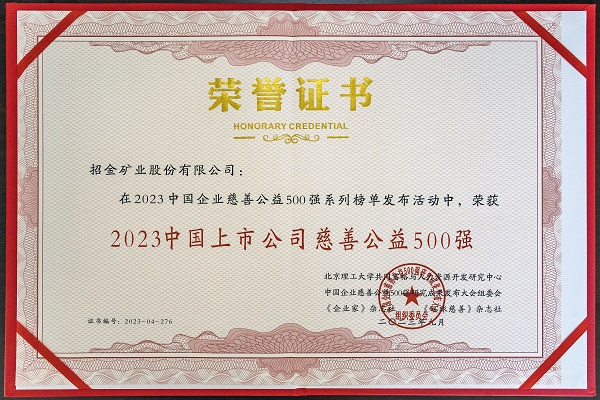 9月23日至24日,第七屆中國企業慈善公益論壇·2023中國企業慈善公益500強系列榜單發布大會在河南省鶴壁市舉行。會上,重磅發布了2023中國企業慈善公益500強系列榜單。招金礦業憑借在支持公益慈善及履行社會責任方面所作出的突出貢獻位列“2023中國上市公司慈善公益500強”第276位,“2023中國上市公司慈善公益投入比例500強”第278位。