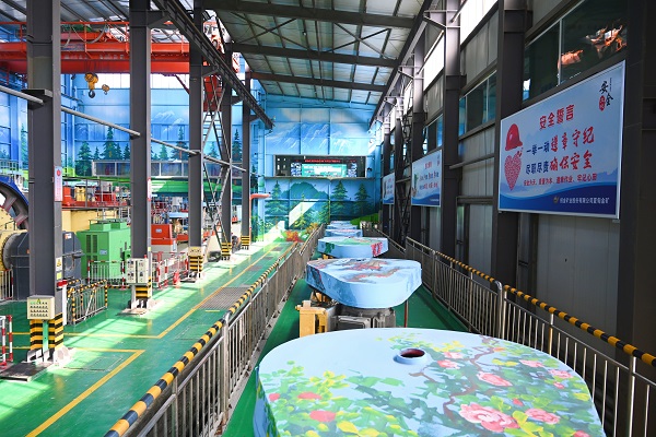 在選礦車間廠房?jī)?nèi)的墻面上,一幅幅生動(dòng)鮮活、寓意深遠(yuǎn)的壁畫(huà)躍然而出。金色的球磨機(jī)、浮選機(jī)被職工們戲稱為“四大金剛”、“十八羅漢”,機(jī)器護(hù)罩上的春夏秋冬四季圖更是被畫(huà)師的巧筆勾勒得淋漓盡致,有寓意“剛正不阿、堅(jiān)韌不拔的春竹”,寓意“堅(jiān)強(qiáng)不屈、奮勇當(dāng)先的梅花”,寓意“高風(fēng)亮節(jié)、溫文爾雅的蘭花”等等,墻壁上的巍巍青山與展翅翱翔的白鷺遙相呼應(yīng),就連冷硬的鋼結(jié)構(gòu)也都變成了充滿溫馨色彩的荷蘭大風(fēng)車,整個(gè)車間生動(dòng)活潑、生機(jī)盎然,充滿了濃厚的人文氣息和藝術(shù)魅力,不僅優(yōu)化了視覺(jué)效果,更有效緩解了職工長(zhǎng)時(shí)間工作帶來(lái)的疲勞感。