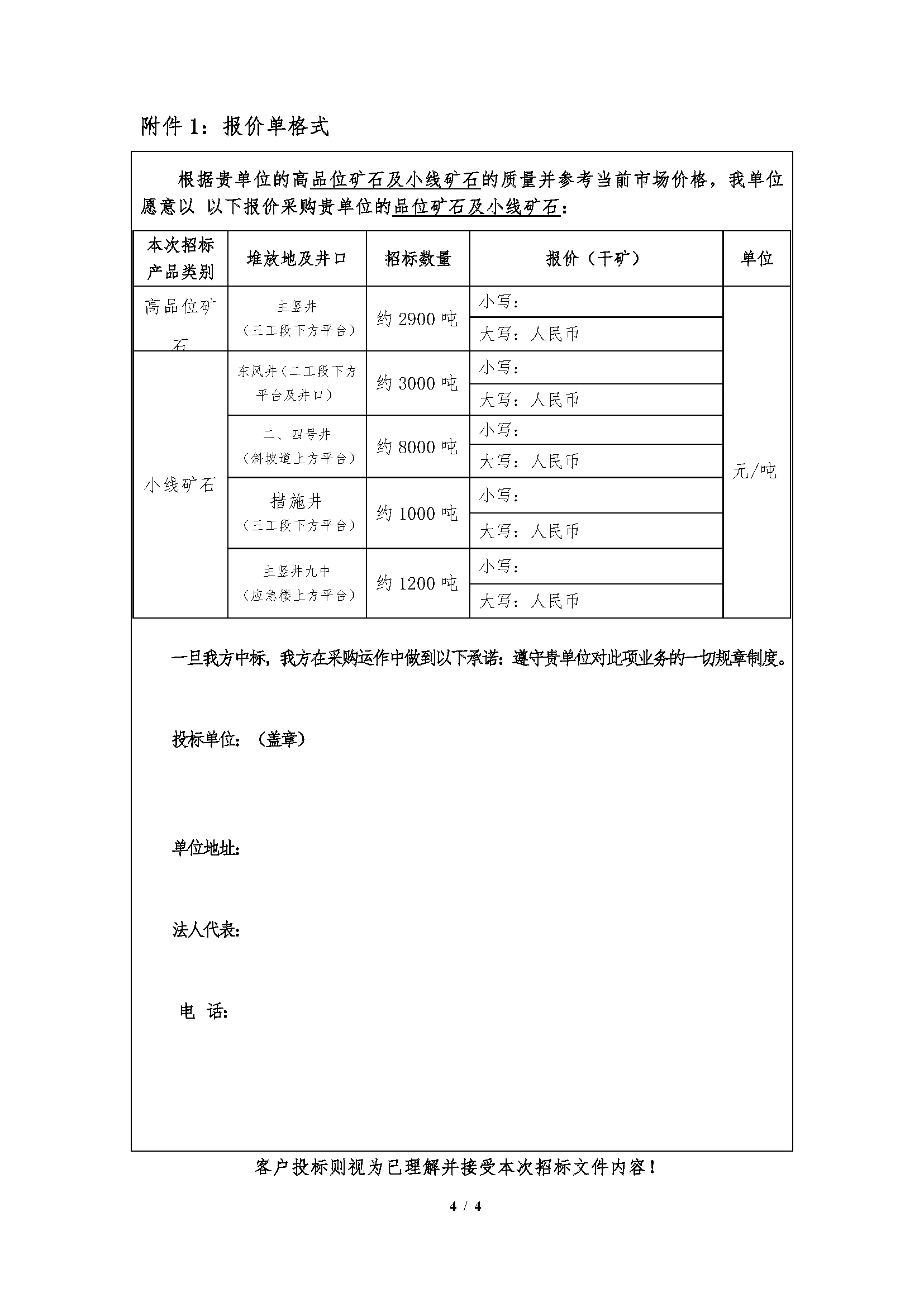 高品位礦石及小線礦石招標(biāo)文件