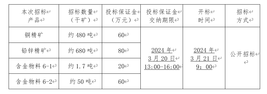 本次招標副產品為我公司含金物料。投標人需提供“三證合一”的營業執照復印件(個人提供身份證復印件)、法人授權委托書(原件)并加蓋企業公章,于2024年3月19日16:00前將上述材料送交我公司企管審計科進行審核,審核合格后的單位應于2024年3月20日下午13時-16時交納投標保證金(見下表,保證金須以轉賬方式支付)。如在2024年3月20日下午16時前投標保證金未足額匯入我公司賬戶則視為放棄本次投標;若投標人最終未中標,則由投標人開具收款收據后,我公司將一次性無息退還投標保證金。