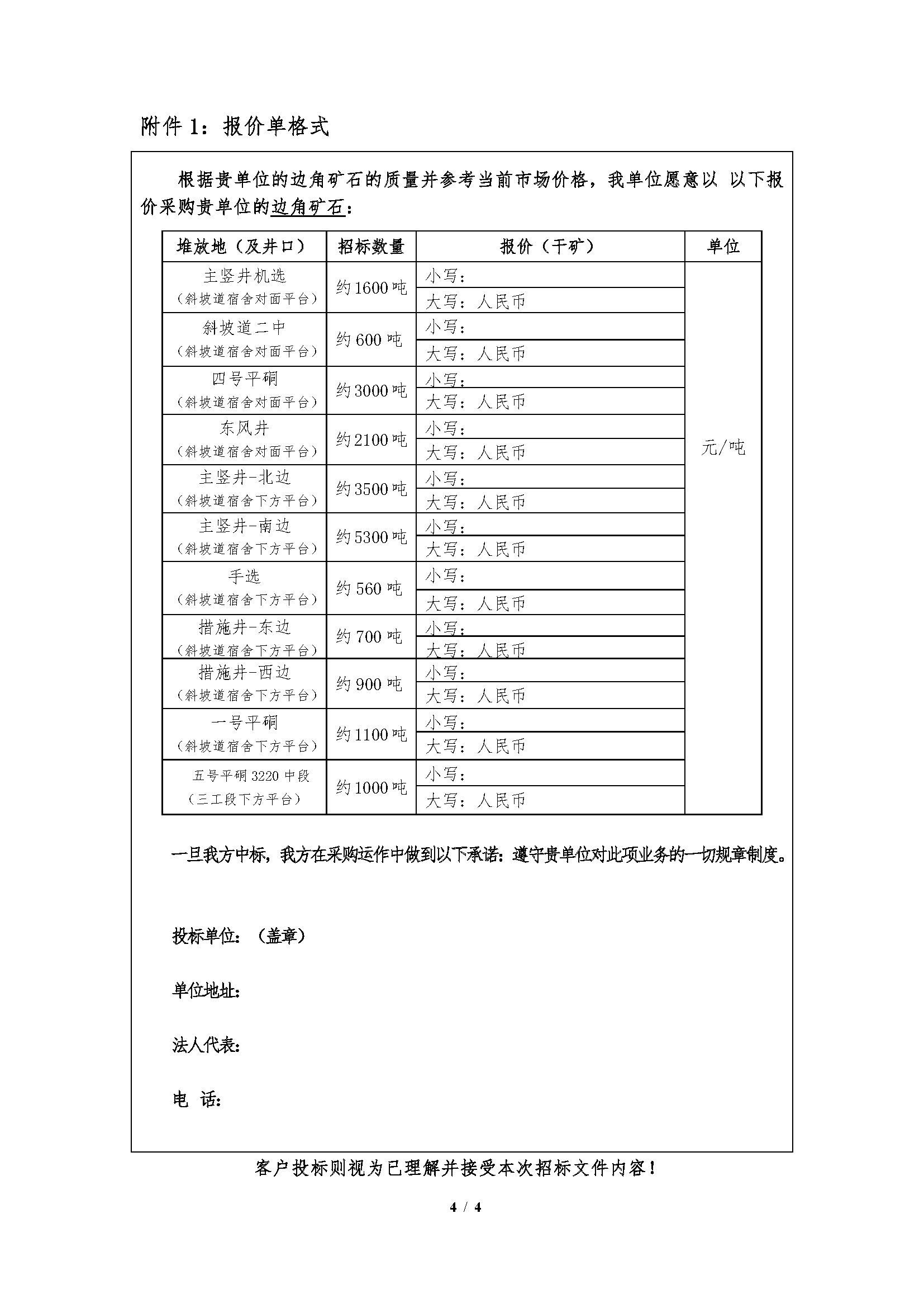 3.招標結束之后中標人必須在 3 個工作日內預付貨款進行拉運。中標人需在中標后 3 日內進行合同簽訂(簽署合同的同時,投標保證金轉為同等金額的履約保證金),并根據合同約定事項,進行款項預付及貨物裝運。如中標人在合同規定時間內預付貨款不能及時到位,我公司將取消其本次中標資格并扣除全額投標保證金;若中標人未聽從我公司安排在規定時間內裝完貨物,我公司將有權終止合同并扣除中標人全額履約保證金(本次招標產品于2024年4月20日前拉運完畢)。為保障中標人的權益,我公司承諾,在此次招標產品數量內,我公司將不會銷售給除中標人以外的任何客戶。如本次招標有違反上述約定的行為,請貴公司撥打舉報電話進行投訴,舉報電話:0535-8262976。